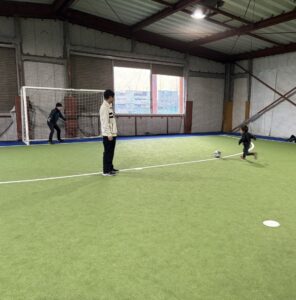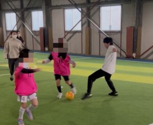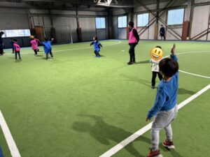 ゴールを目指してゴールを守るシンプ ルなルールの集団スポーツを通じて自 分で決断する事や仲間と協力する力 を養います。近隣のフットサルコートに 送迎車で移動します。